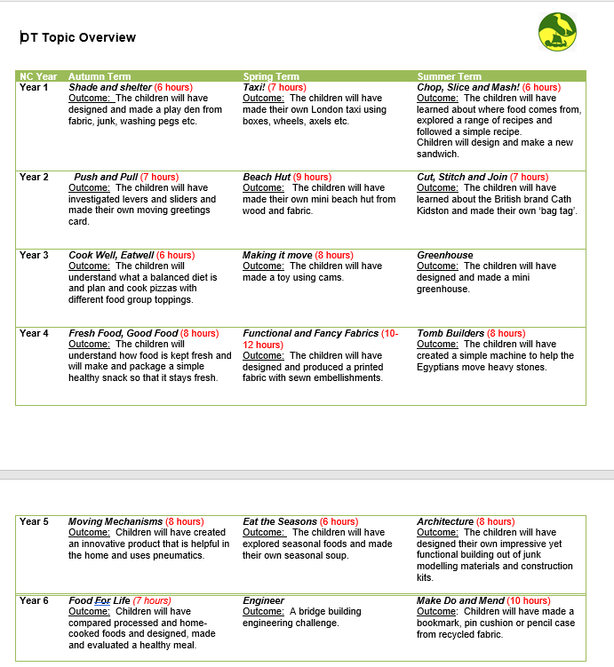 We follow a broad and balanced Design and Technology curriculum that builds on previous learning and provides both support and challenge for learners. We ensure there is a progression of skills and cover all aspects of the Design and Technology curriculum.