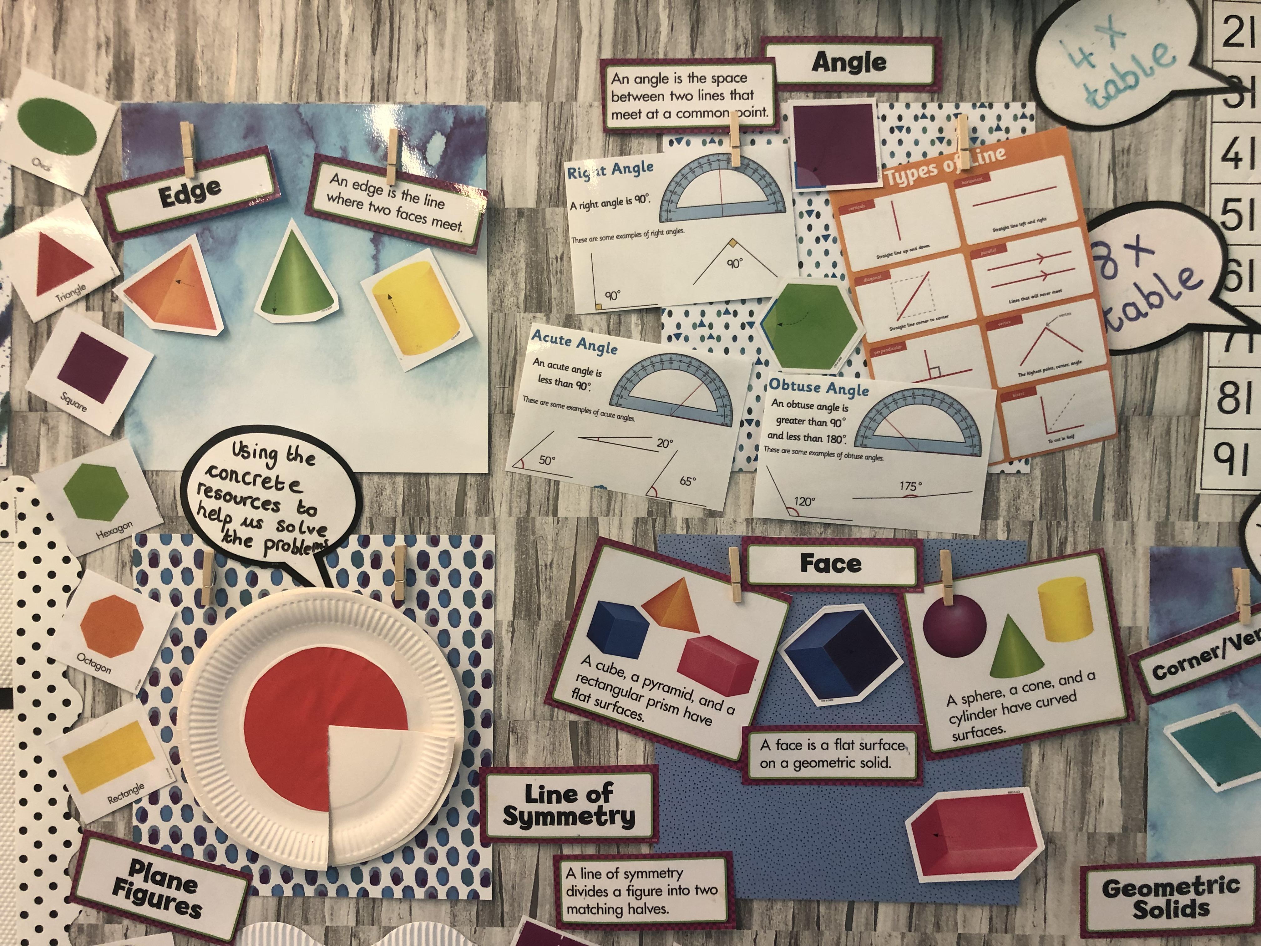 We aim to make our environment purposeful and engaging for the children. Learning walls change depending on the topic being taught, to provide the children with key vocabulary and learning aims which will support their learning. Number lines, times tables and place value grids are used to deepen children's understanding of number and place value, being interactive tools for children to engage with and solve problems.
